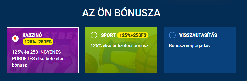 Az üdvözlő bónusz aktiválása egyszerű folyamat, amely automatikusan megtörténik a feltételek teljesítésekor. A regisztráció során ki kell választani a kívánt bónusztípust: kaszinó vagy sportfogadás. A minimum befizetési összeg 2,000 forint a standard verzióhoz, míg 5,000 forint szükséges a megnövelt ajánlathoz. Az időkorlát különbözik a két verzió között: 30 nap áll rendelkezésre az alapbónuszhoz, míg csak 7 nap a 125%-os változathoz.